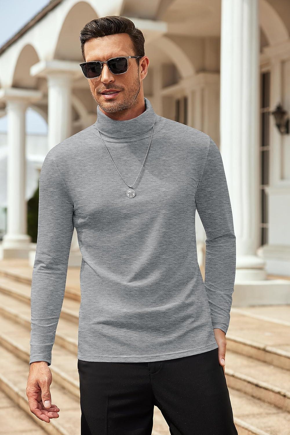 COOFANDY Men’s Slim Fit Basic Turtleneck Long Sleeve Lightweight Pullover Sweaters Casual Knitted Tops(Grey)