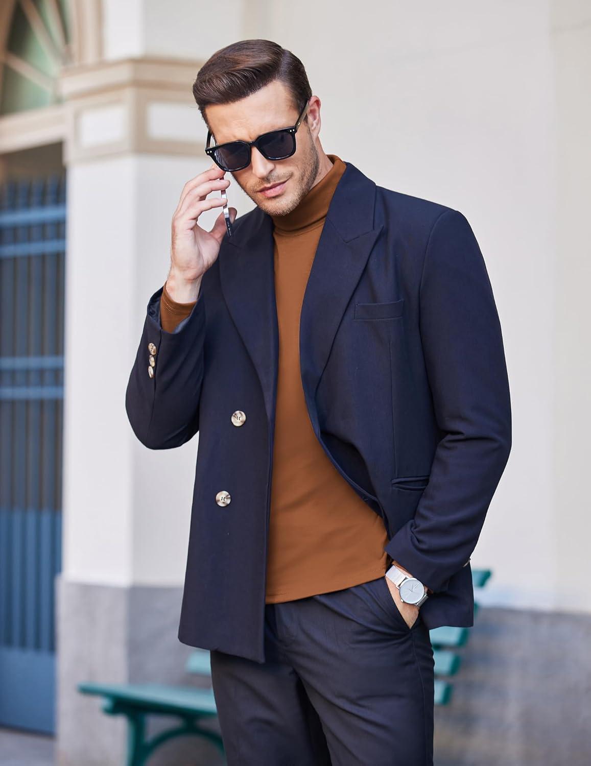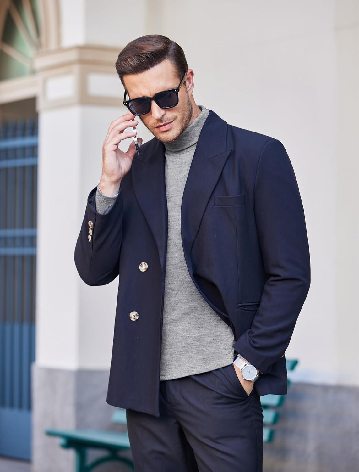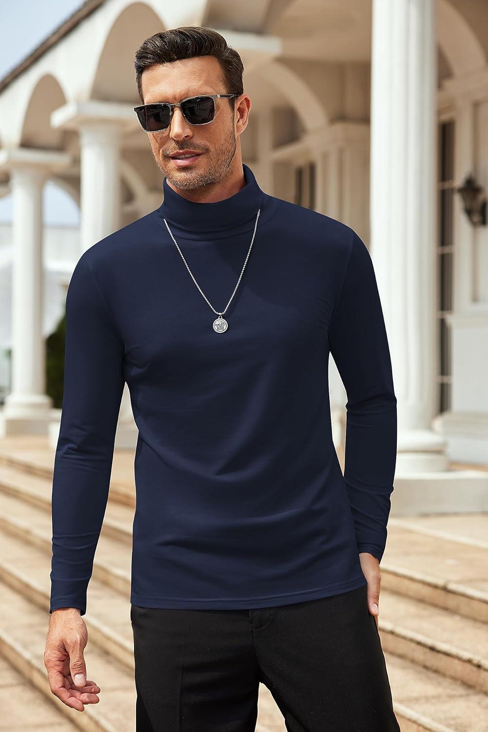 COOFANDY Men’s Slim Fit Basic Turtleneck Long Sleeve Lightweight Pullover Sweaters Casual Knitted Tops(Navy)