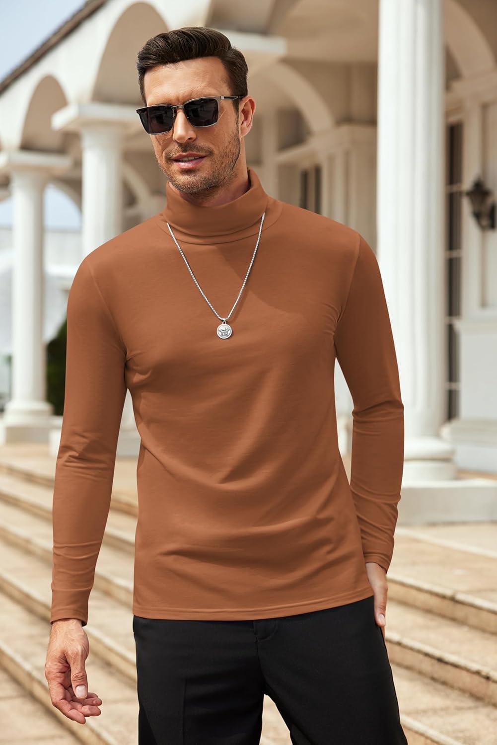 COOFANDY Men’s Slim Fit Basic Turtleneck Long Sleeve Lightweight Pullover Sweaters Casual Knitted Tops(Khaki)