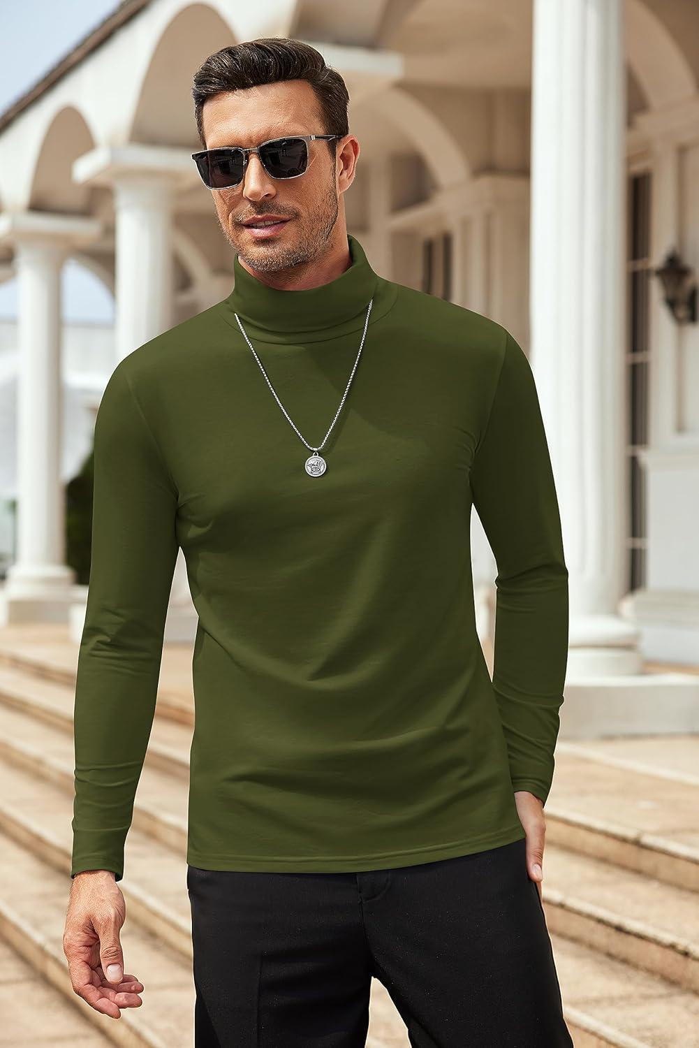 COOFANDY Men’s Slim Fit Basic Turtleneck Long Sleeve Lightweight Pullover Sweaters Casual Knitted Tops(Olive Green)
