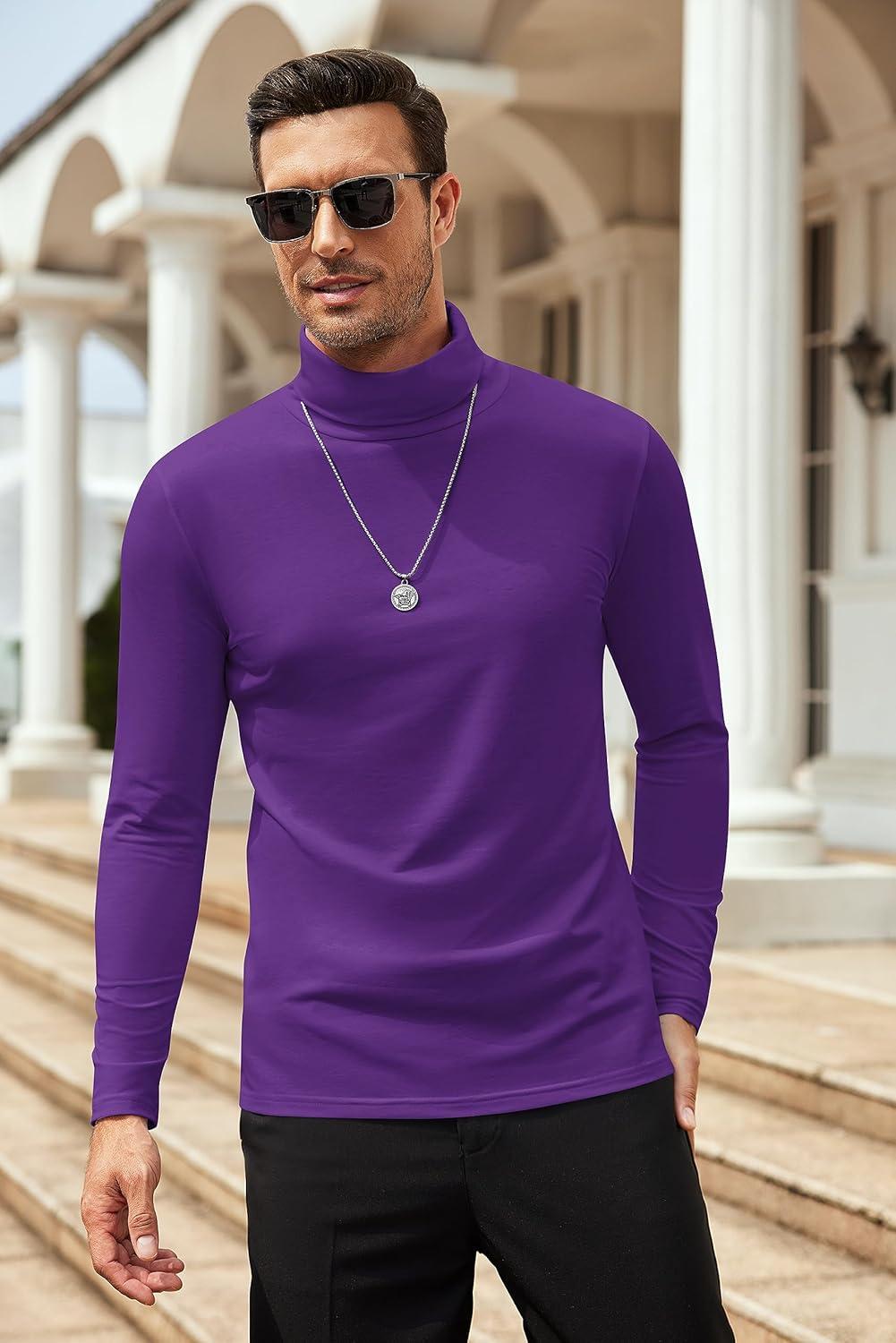 COOFANDY Men’s Slim Fit Basic Turtleneck Long Sleeve Lightweight Pullover Sweaters Casual Knitted Tops(Purple)