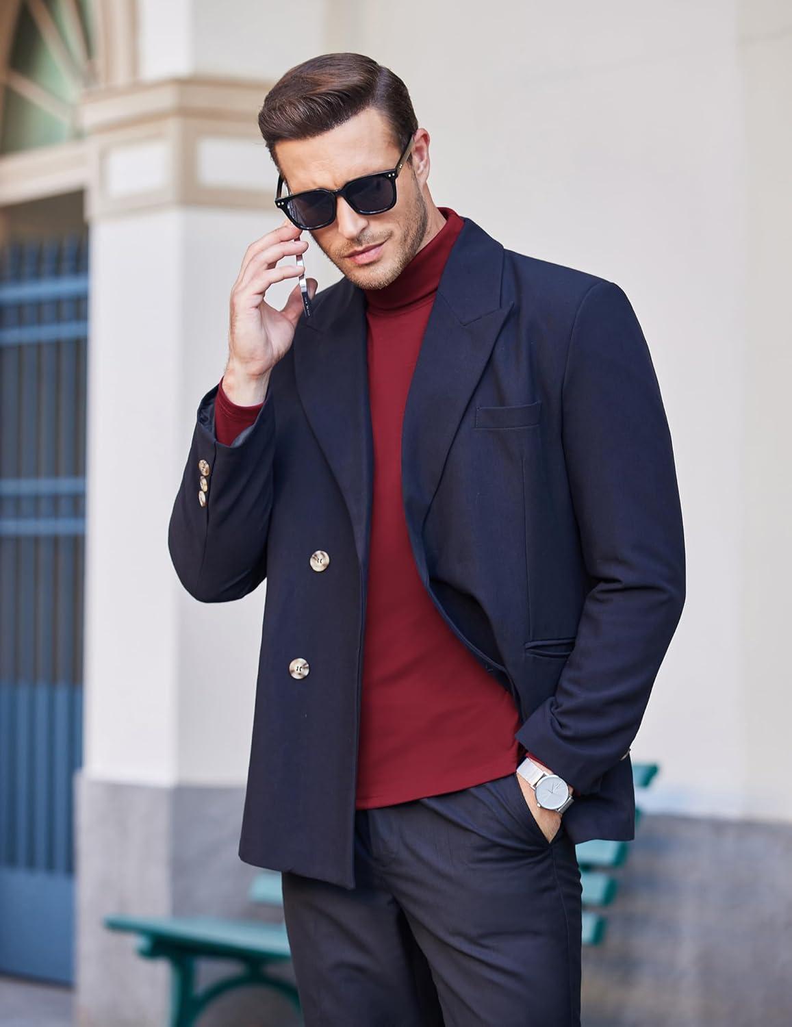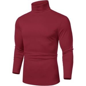 COOFANDY Men’s Slim Fit Basic Turtleneck Long Sleeve Lightweight Pullover Sweaters Casual Knitted Tops(Wine Red)