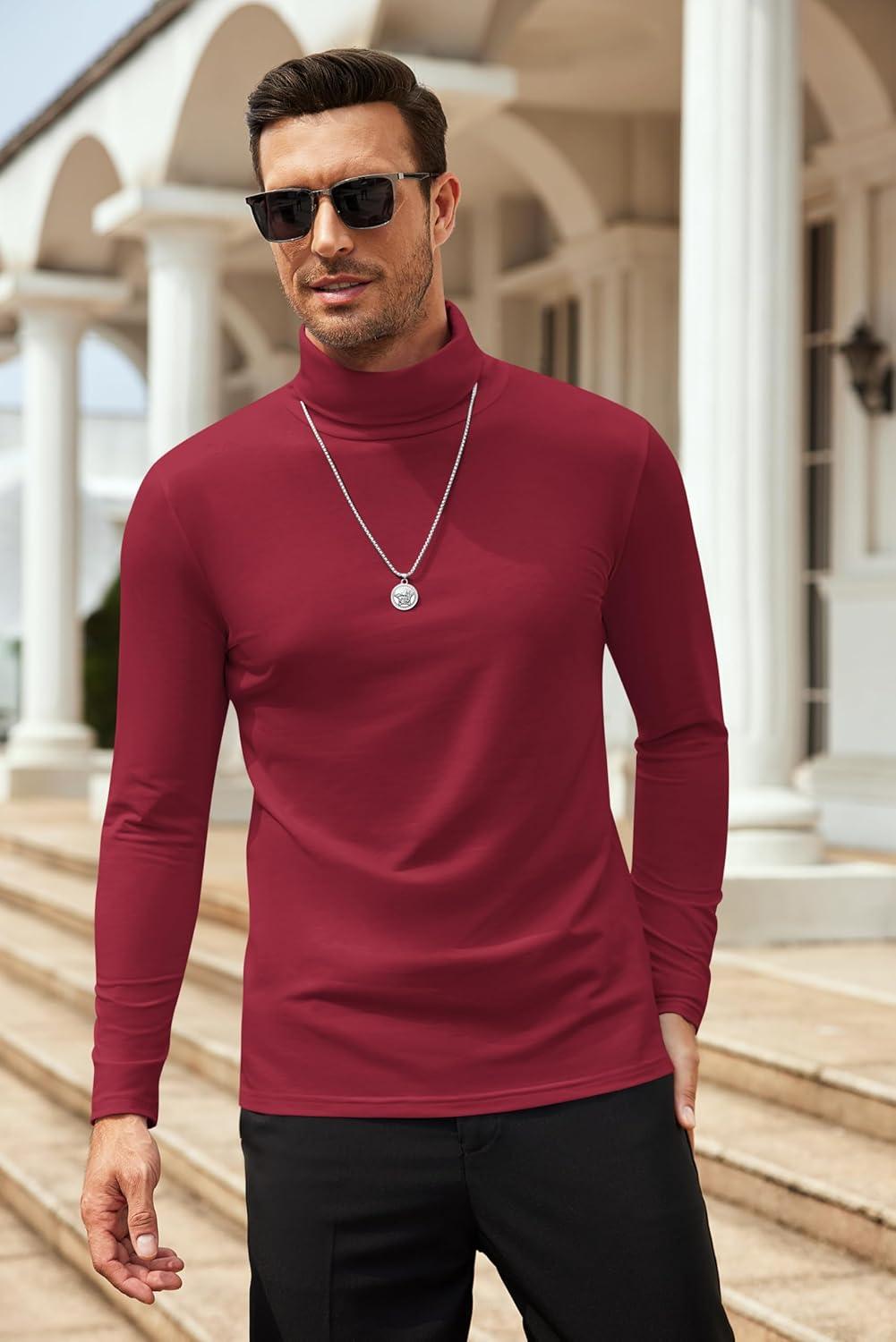 COOFANDY Men’s Slim Fit Basic Turtleneck Long Sleeve Lightweight Pullover Sweaters Casual Knitted Tops(Red)