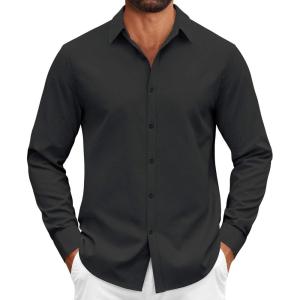 • COOFANDY Mens Casual Button Down Shirts Long Sleeve Regualar Fit Dress Shirt Oxford Shirts for Men(Black)