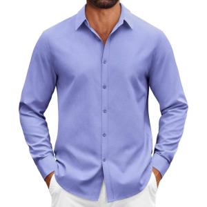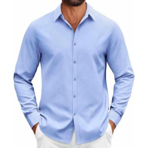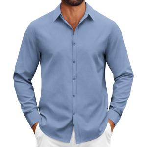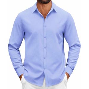 • COOFANDY Mens Casual Button Down Shirts Long Sleeve Regualar Fit Dress Shirt Oxford Shirts for Men(Light Blue)