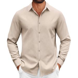 • COOFANDY Mens Casual Button Down Shirts Long Sleeve Regualar Fit Dress Shirt Oxford Shirts for Men(Khaki)