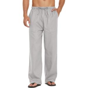COOFANDY Mens Casual Linen Pants Elastic Waist Linen Pants Drawstring Summer Beach Yoga Linen Trouser(Light Grey)