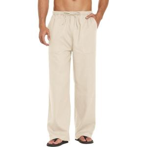 COOFANDY Mens Casual Linen Pants Elastic Waist Linen Pants Drawstring Summer Beach Yoga Linen Trouser(Khaki)