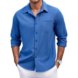 COOFANDY Men’s Casual Button Down Shirts Long Sleeve Untucked Shirts Regular Fit Linen Shirt(Blue)