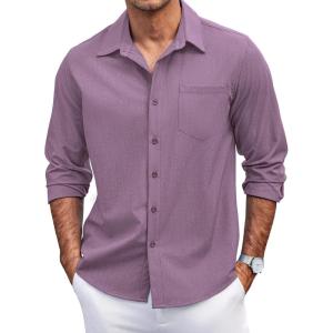 COOFANDY Men’s Casual Button Down Shirts Long Sleeve Untucked Shirts Regular Fit Linen Shirt(Purple)