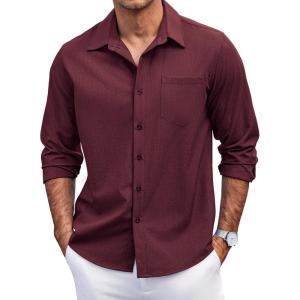 COOFANDY Men’s Casual Button Down Shirts Long Sleeve Untucked Shirts Regular Fit Linen Shirt(Red)