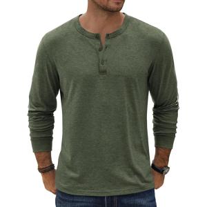 COOFANDY Men’s Henley T-Shirt Long Sleeve Casual Lightweight Pullover Shirts Soft Stretch Basic Tees Fall Tops(Army Green)