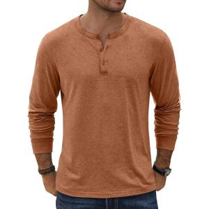 COOFANDY Men’s Henley T-Shirt Long Sleeve Casual Lightweight Pullover Shirts Soft Stretch Basic Tees Fall Tops(Caramel)