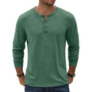COOFANDY Men’s Henley T-Shirt Long Sleeve Casual Lightweight Pullover Shirts Soft Stretch Basic Tees Fall Tops(Green)