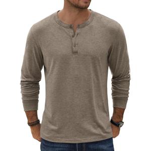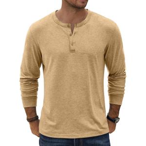 COOFANDY Men’s Henley T-Shirt Long Sleeve Casual Lightweight Pullover Shirts Soft Stretch Basic Tees Fall Tops(Khaki)