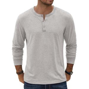 COOFANDY Men’s Henley T-Shirt Long Sleeve Casual Lightweight Pullover Shirts Soft Stretch Basic Tees Fall Tops(Light Grey)