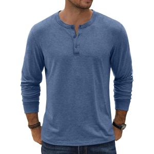 COOFANDY Men’s Henley T-Shirt Long Sleeve Casual Lightweight Pullover Shirts Soft Stretch Basic Tees Fall Tops(Demin Blue)