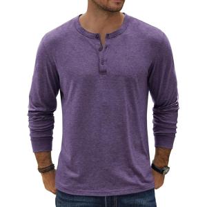 COOFANDY Men’s Henley T-Shirt Long Sleeve Casual Lightweight Pullover Shirts Soft Stretch Basic Tees Fall Tops(Purple)