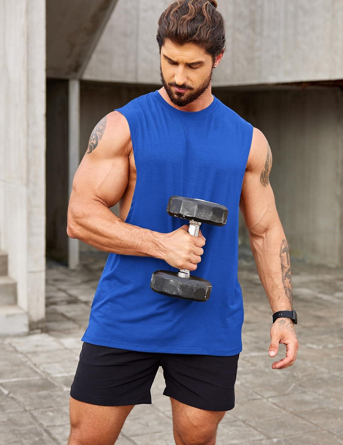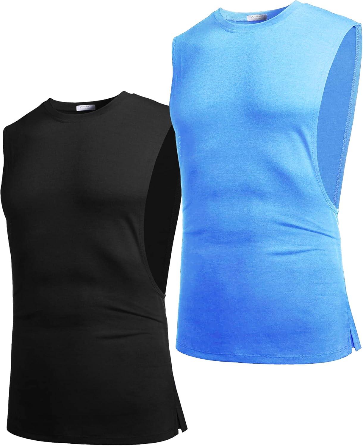 COOFANDY Men Workout Tank Top 2 Pack Gym Bodybuilding Sleeveless Muscle T Shirts(Black/Light Blue(2pcs))