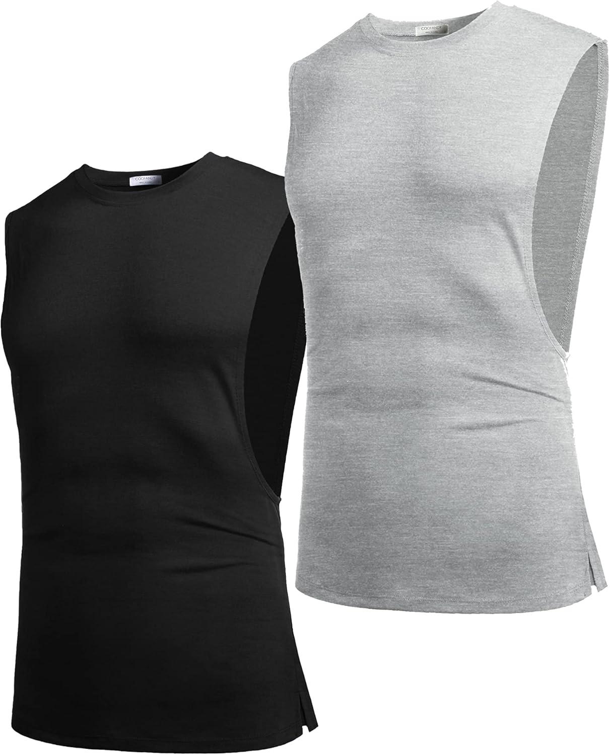 COOFANDY Men Workout Tank Top 2 Pack Gym Bodybuilding Sleeveless Muscle T Shirts(Black/Dark Grey(2pcs))