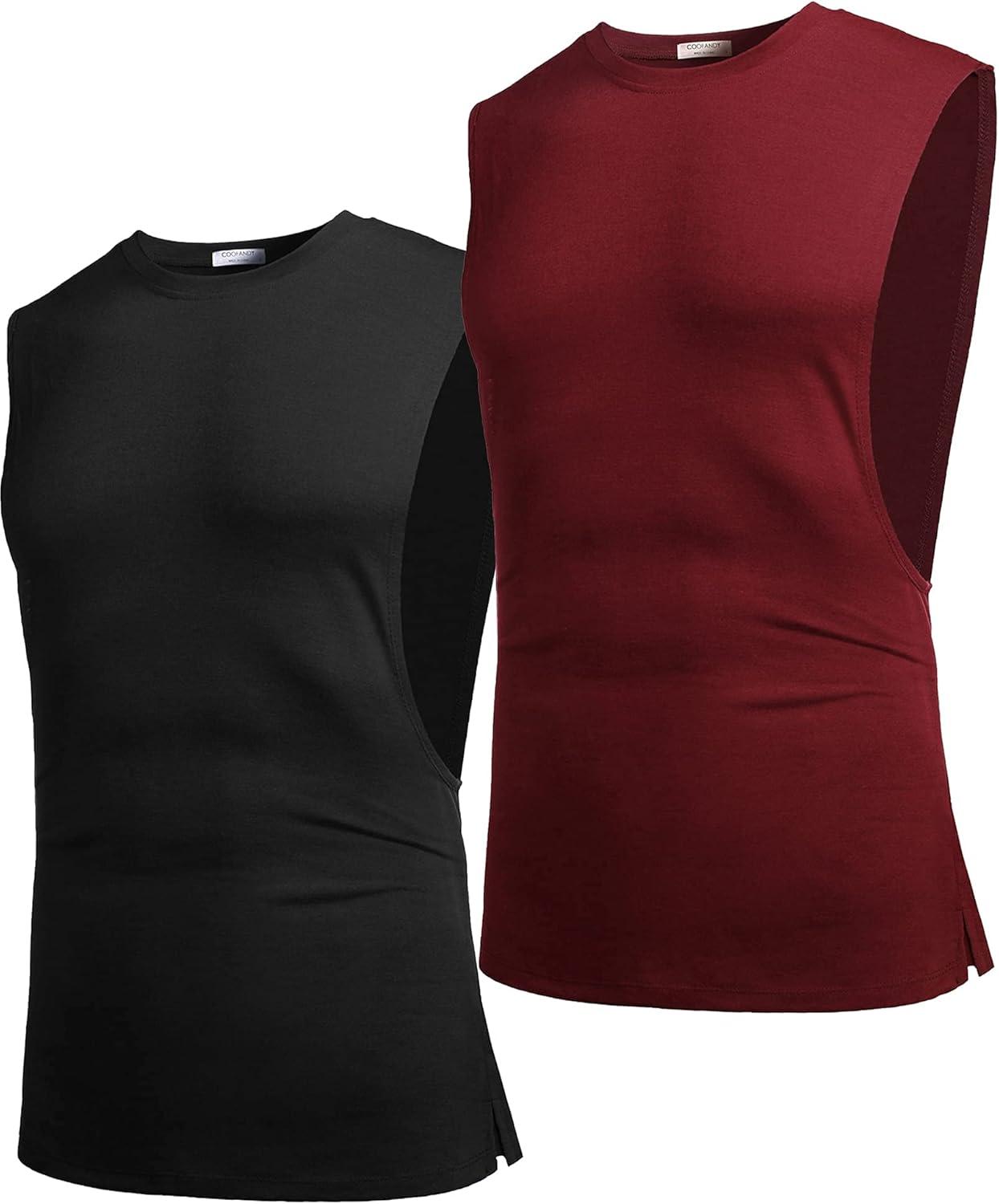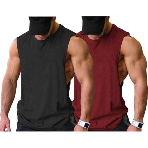COOFANDY Men Workout Tank Top 2 Pack Gym Bodybuilding Sleeveless Muscle T Shirts(Black/Wine Red(2pcs))