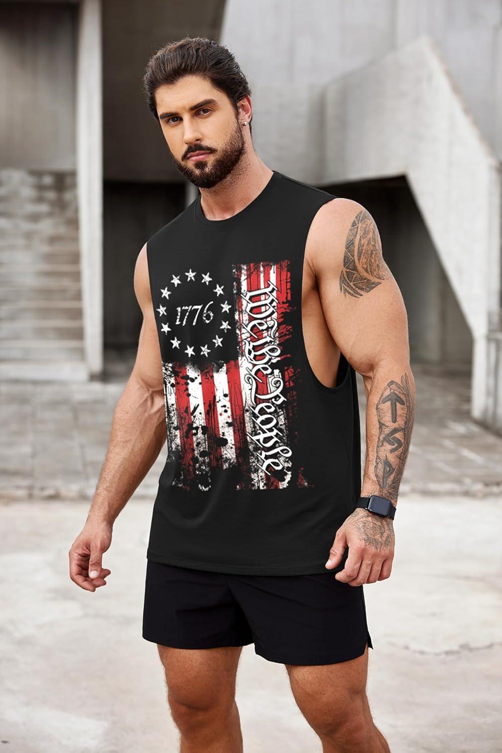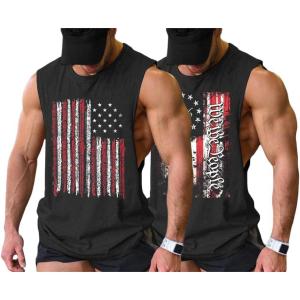 COOFANDY Men Workout Tank Top 2 Pack Gym Bodybuilding Sleeveless Muscle T Shirts(Usa Flag 01)