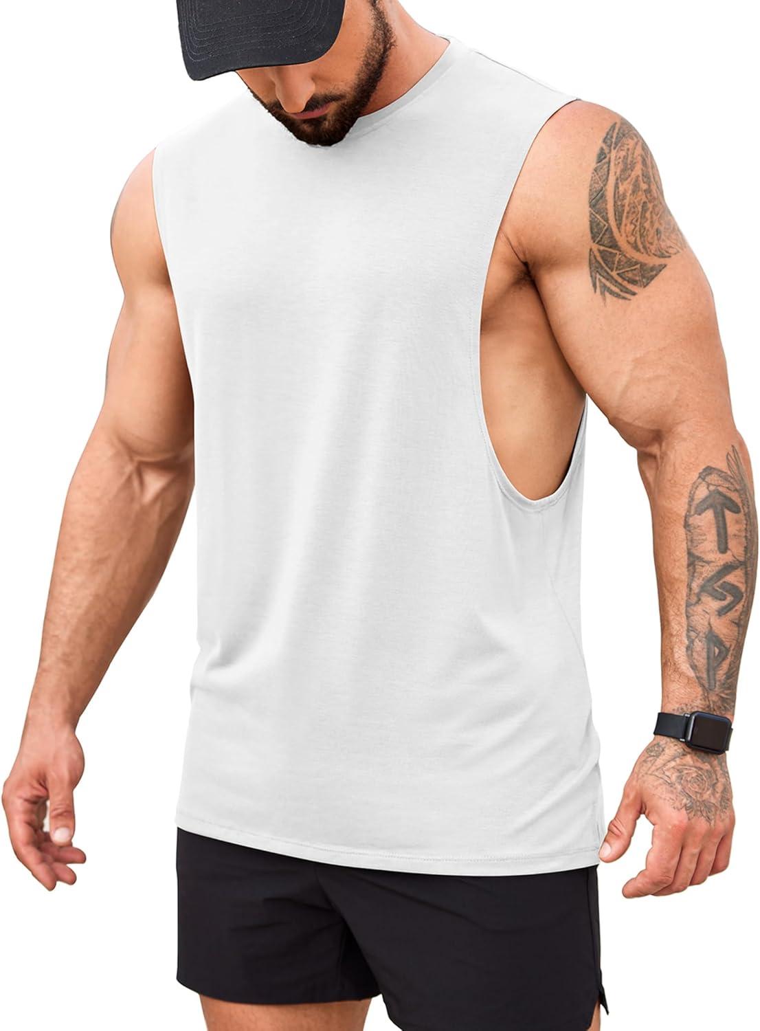 COOFANDY Men Workout Tank Top 2 Pack Gym Bodybuilding Sleeveless Muscle T Shirts(White(1pcs))