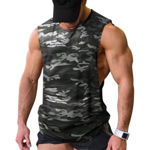 COOFANDY Men Workout Tank Top 2 Pack Gym Bodybuilding Sleeveless Muscle T Shirts(Camo Black)