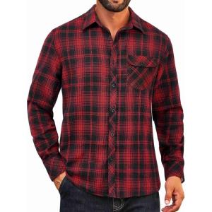 COOFANDY Mens Flannel Plaid Shirts Long Sleeve Casual Button Down Cotton Shirt with Pocket(Red Black Plaid)