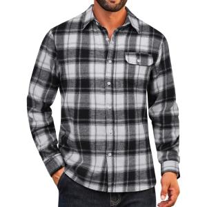 COOFANDY Mens Flannel Plaid Shirts Long Sleeve Casual Button Down Cotton Shirt with Pocket(Black Grey Plaid)