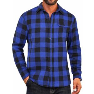COOFANDY Mens Flannel Shirts Long Sleeve Button Down Shirt Casual Plaid Shirts with Pocket(Blue Brown Red Plaid)