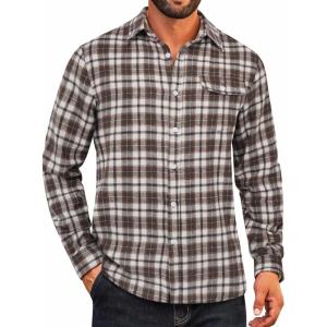 COOFANDY Mens Flannel Plaid Shirts Long Sleeve Casual Button Down Cotton Shirt with Pocket(Brown White Plaid)