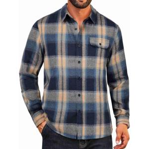 COOFANDY Mens Flannel Plaid Shirts Long Sleeve Casual Button Down Cotton Shirt with Pocket(Navy Khaki Plaid)