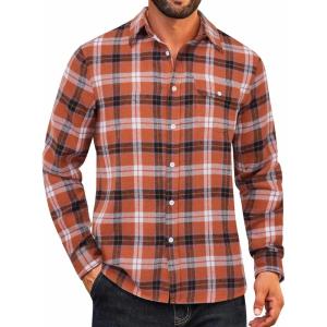 COOFANDY Mens Flannel Shirts Long Sleeve Button Down Shirt Casual Plaid Shirts with Pocket(Cedarwood Plaid)