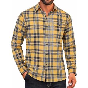 COOFANDY Mens Flannel Plaid Shirts Long Sleeve Casual Button Down Cotton Shirt with Pocket(Yellow Navy Plaid)