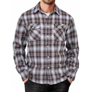 COOFANDY Mens Flannel Shirts Long Sleeve Button Down Shirt with Pocket Casual Shirts Work Shirts for Men(Grey Brown Black Plaid)