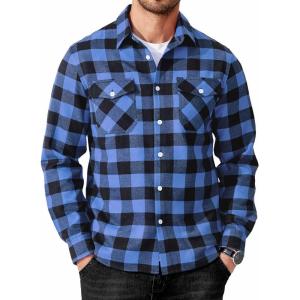 COOFANDY Mens Flannel Shirts Long Sleeve Button Down Shirt with Pocket Casual Shirts Work Shirts for Men(Royal Blue/Black)