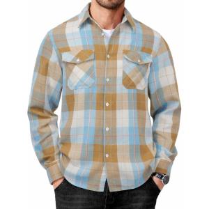 COOFANDY Mens Flannel Shirts Long Sleeve Button Down Shirt Casual Plaid Shirts with Pocket(Khaki Blue Plaid)