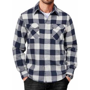 COOFANDY Mens Flannel Shirts Long Sleeve Button Down Shirt Casual Plaid Shirts with Pocket(Navy White Plaid)