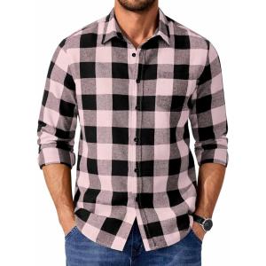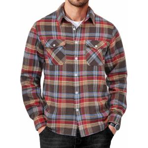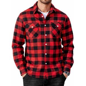 • COOFANDY Mens Flannel Shirts Long Sleeve Casual Plaid Button Down Shirt Cotton Shirt Cowboy Work Shirts with Pockets(Red)