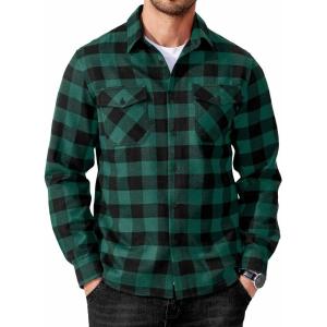 • COOFANDY Mens Flannel Shirts Long Sleeve Casual Plaid Button Down Shirt Cotton Shirt Cowboy Work Shirts with Pockets(Green)