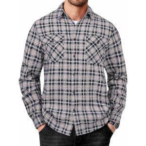 • COOFANDY Mens Flannel Shirts Long Sleeve Casual Plaid Button Down Shirt Cotton Shirt Cowboy Work Shirts with Pockets(Navy Blue-grey)