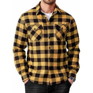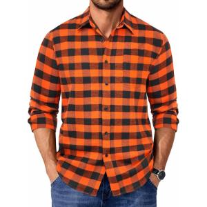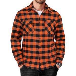 • COOFANDY Mens Flannel Shirts Long Sleeve Casual Plaid Button Down Shirt Cotton Shirt Cowboy Work Shirts with Pockets(Orange)