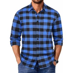 • COOFANDY Mens Flannel Shirts Long Sleeve Casual Plaid Button Down Shirt Cotton Shirt Cowboy Work Shirts with Pockets(Classic British)