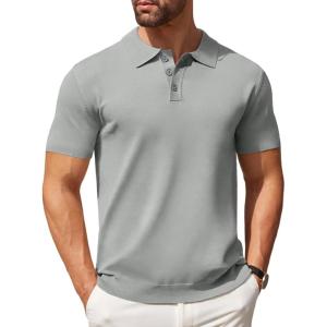 COOFANDY Mens Knit Polo Shirts Casual Short Sleeve Button Down Polo Shirt Classic Golf Shirts(Grey)