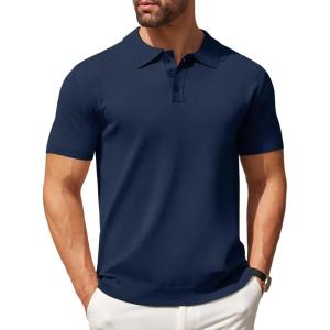 COOFANDY Mens Knit Polo Shirts Casual Short Sleeve Button Down Polo Shirt Classic Golf Shirts(Navy Blue)