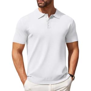 COOFANDY Mens Knit Polo Shirts Casual Short Sleeve Button Down Polo Shirt Classic Golf Shirts(White)
