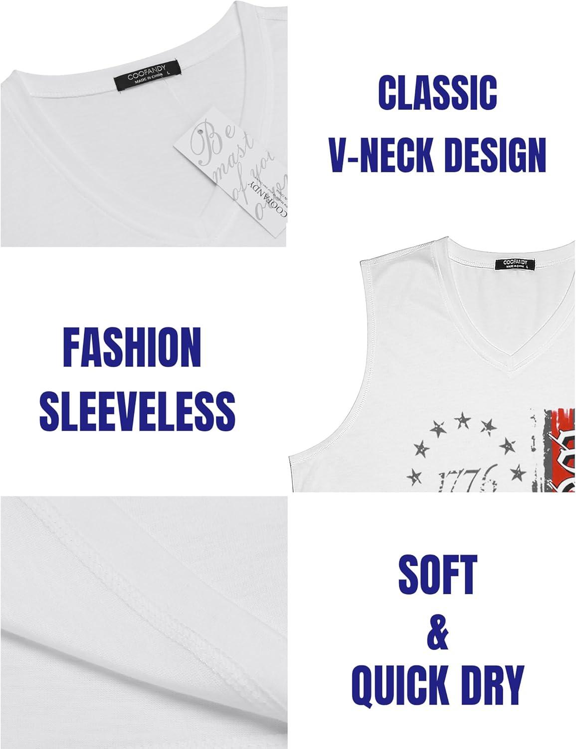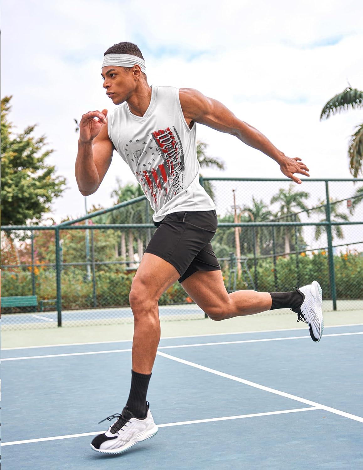 COOFANDY Men’s 3 Pack Workout Tank Tops Gym Sleeveless Shirts V Neck Bodybuilding Muscle Tee Shirt(Usa Flag 01)