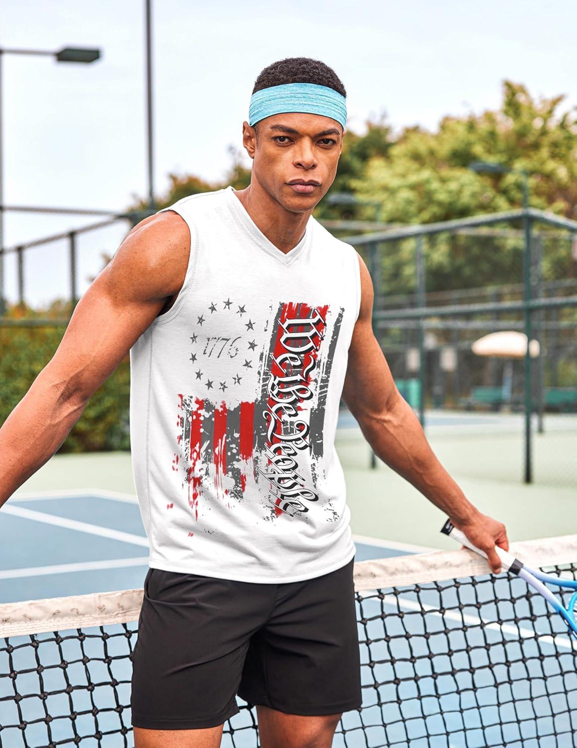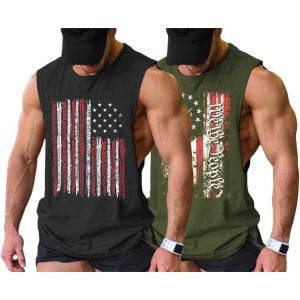 COOFANDY Men’s 3 Pack Workout Tank Tops Gym Sleeveless Shirts V Neck Bodybuilding Muscle Tee Shirt(White Flag(1 Pack))
