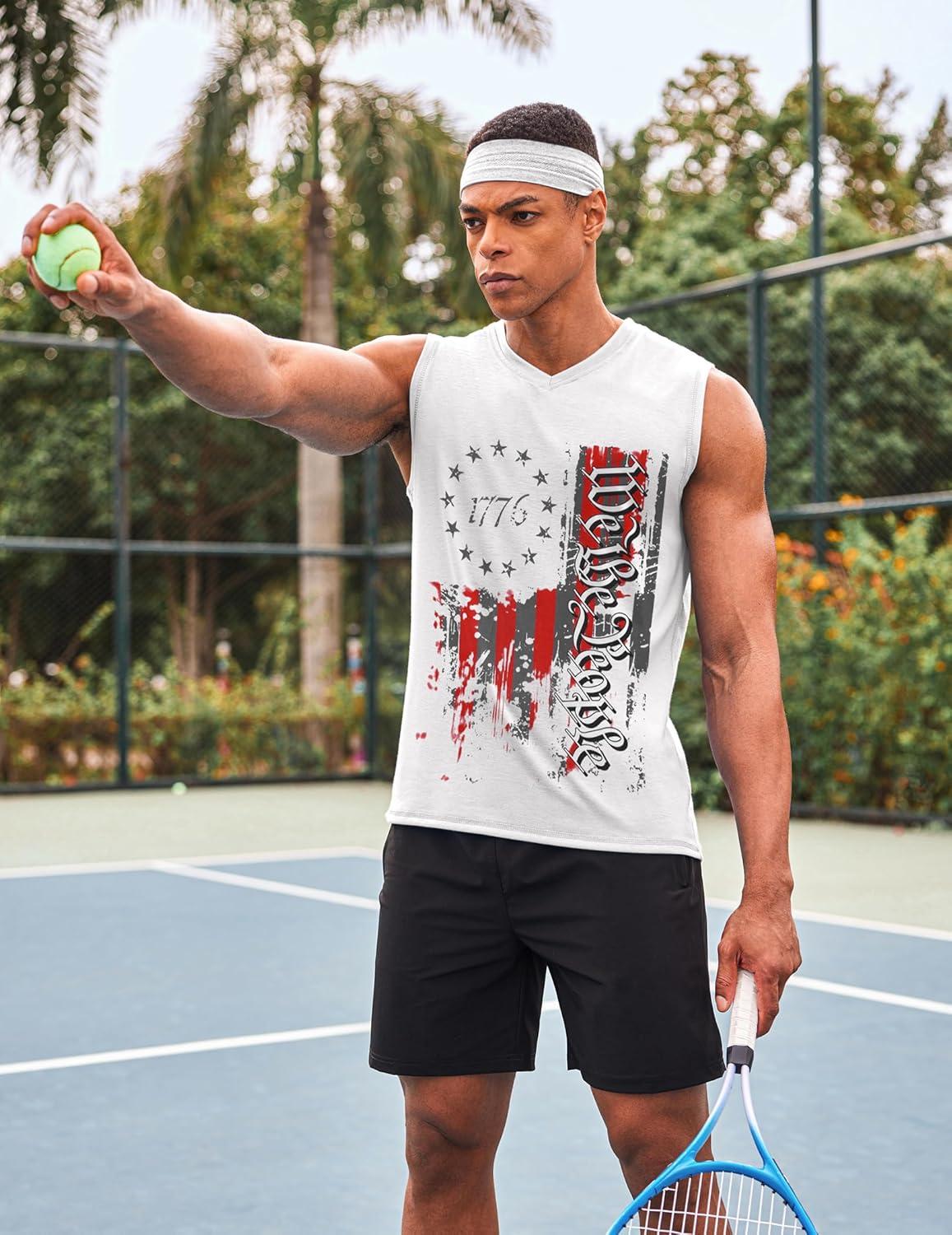 COOFANDY Men’s 3 Pack Workout Tank Tops Gym Sleeveless Shirts V Neck Bodybuilding Muscle Tee Shirt(Usa Flag 1)